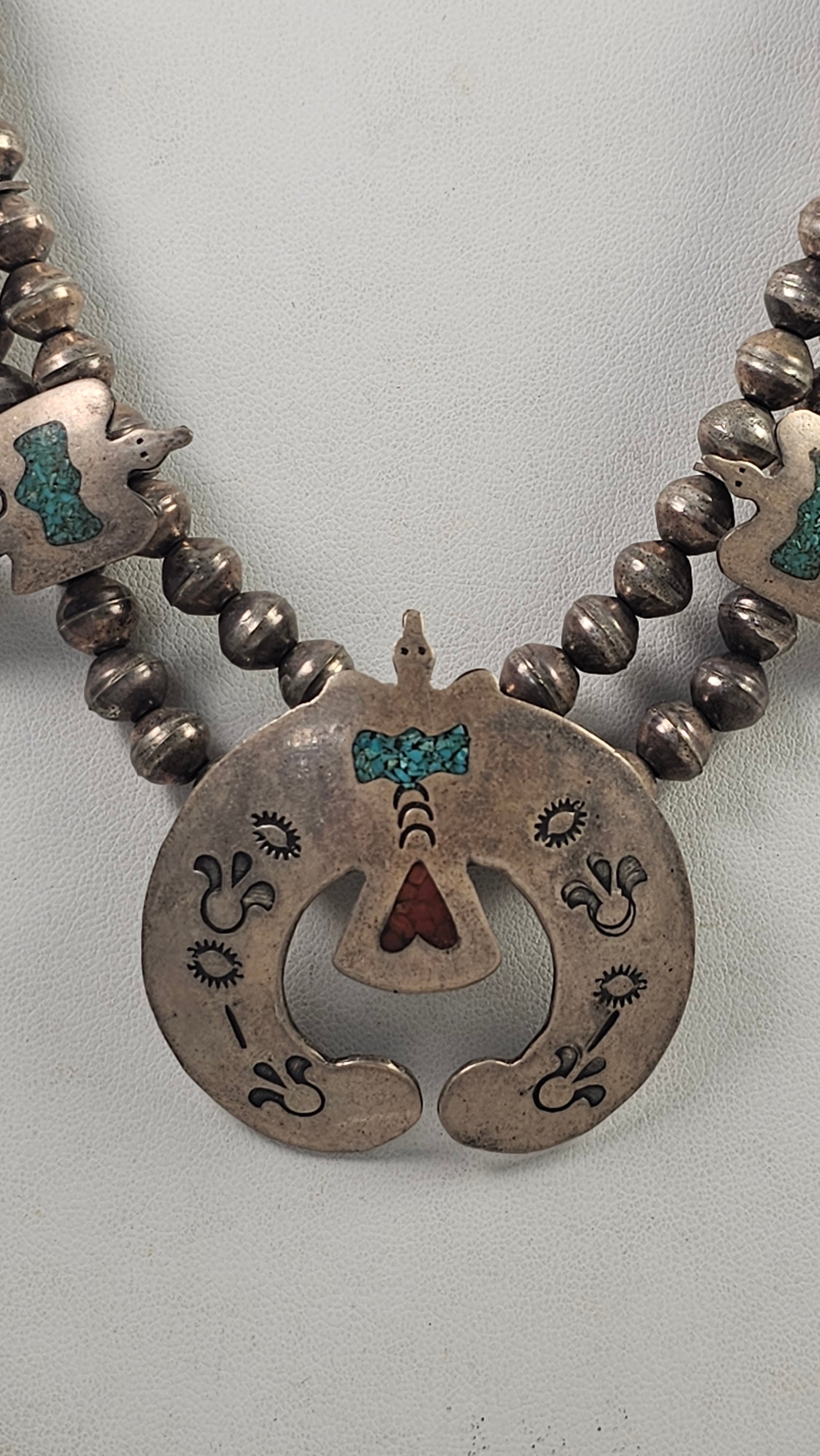 1970'S Vintage chip inlay peyote bird necklace. 28" overall