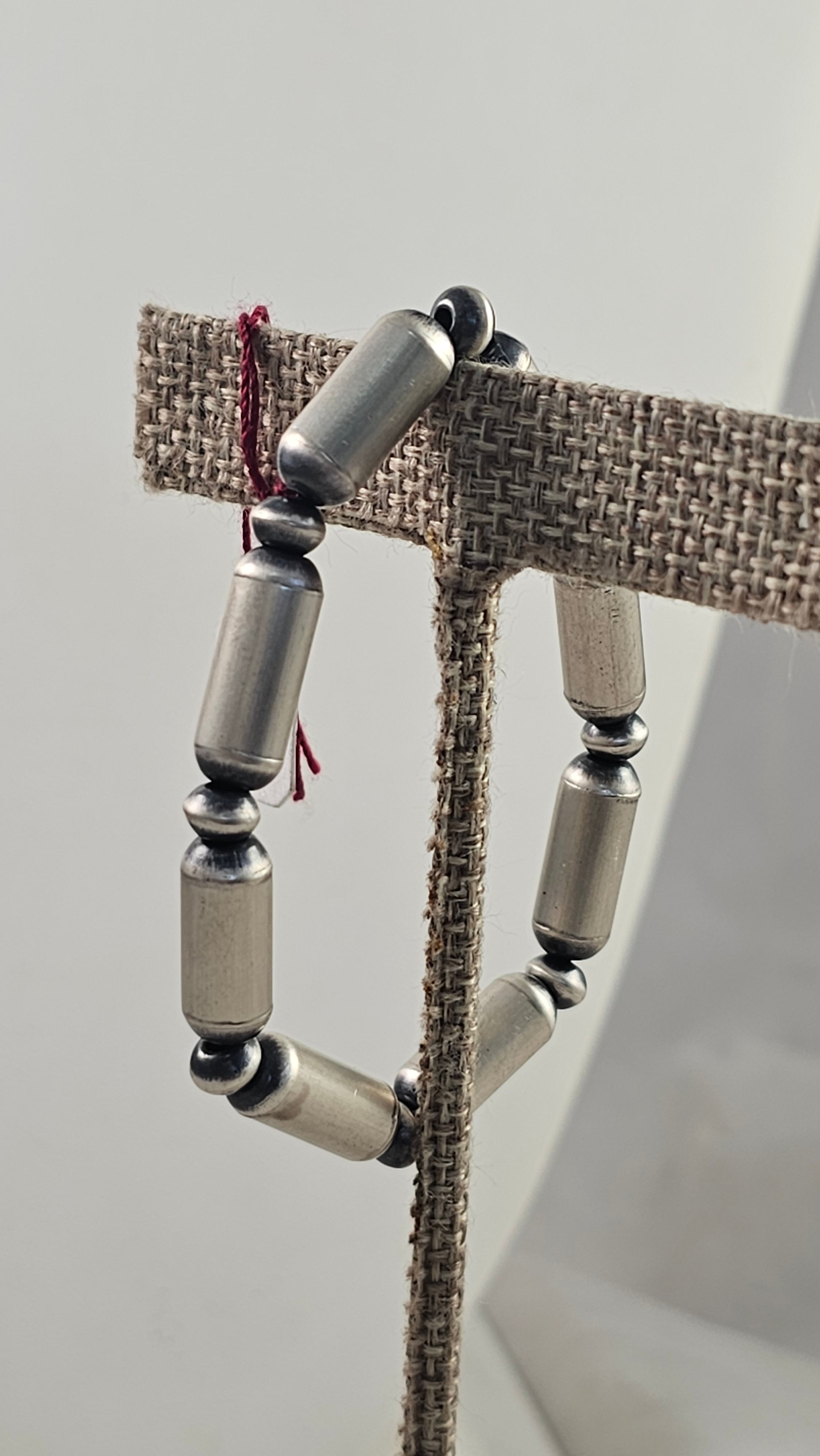 Navajo pearl bracelet. Sterling, handmade 6.5 mm barrel beads on elastic. Size 5-1/2"