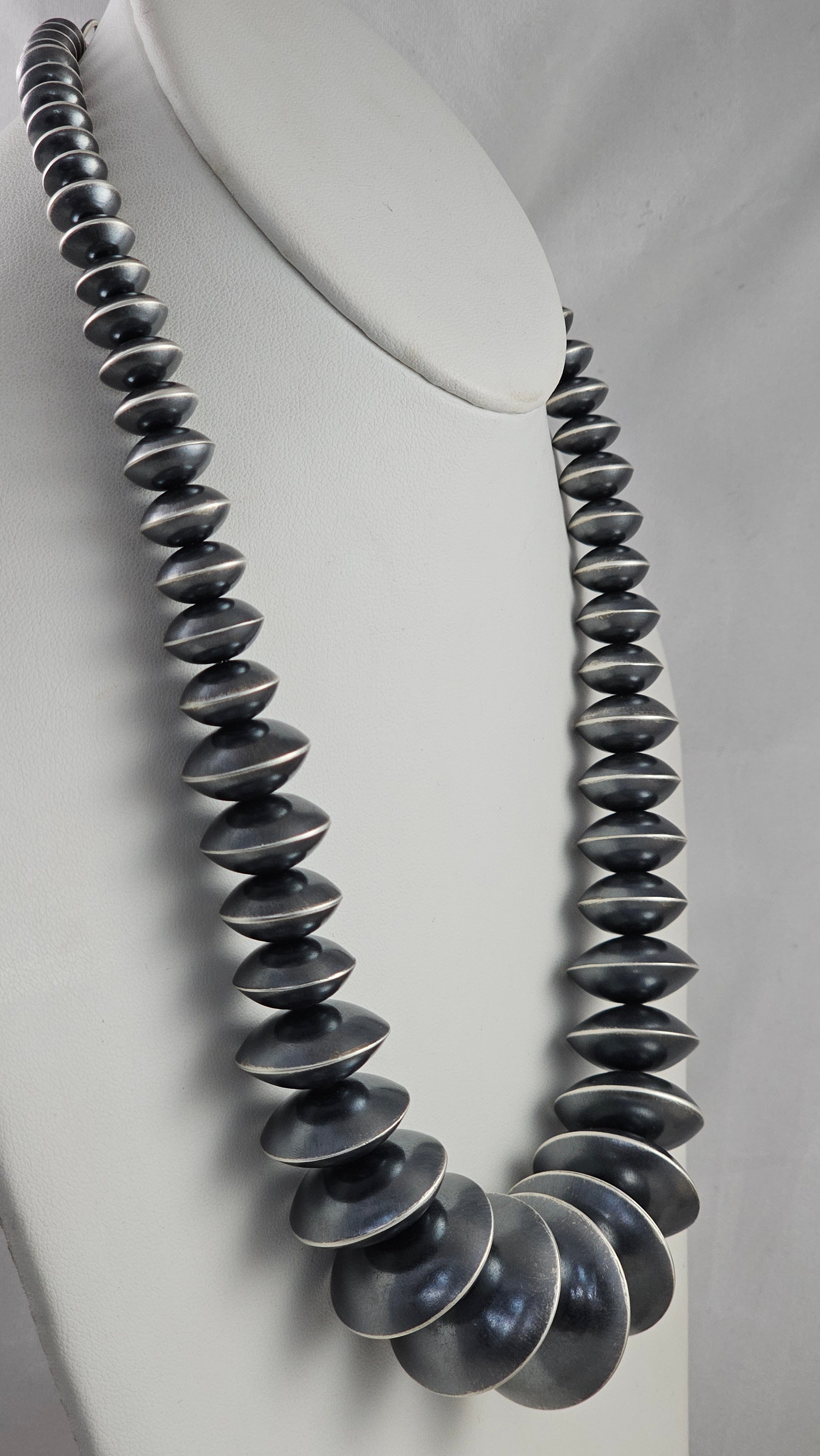 Navajo saucer pearl necklace. Sterling handmade. 22"