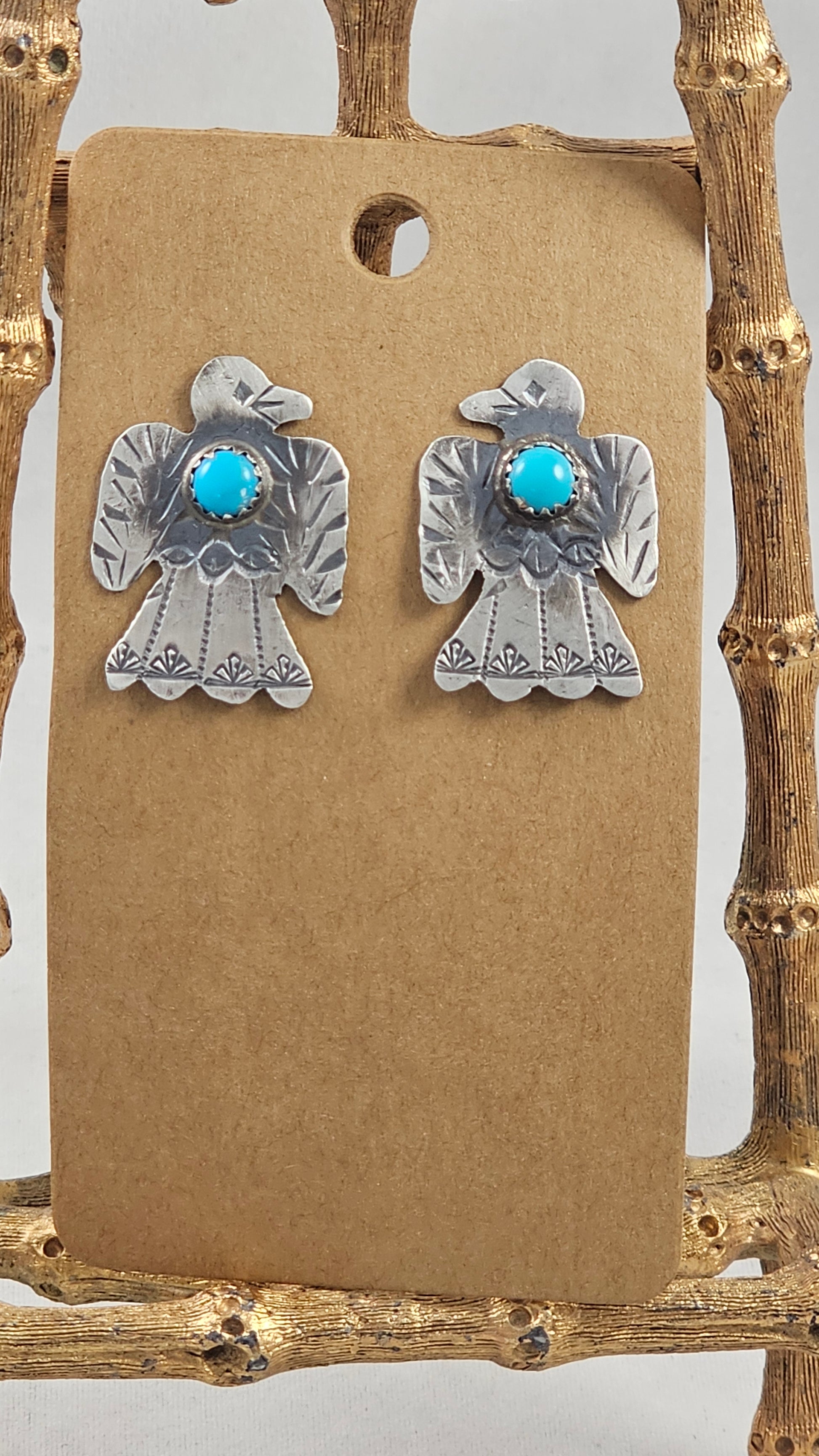 Thunderbird post earrings, turquoise and sterling. 1 × 3/4" wide