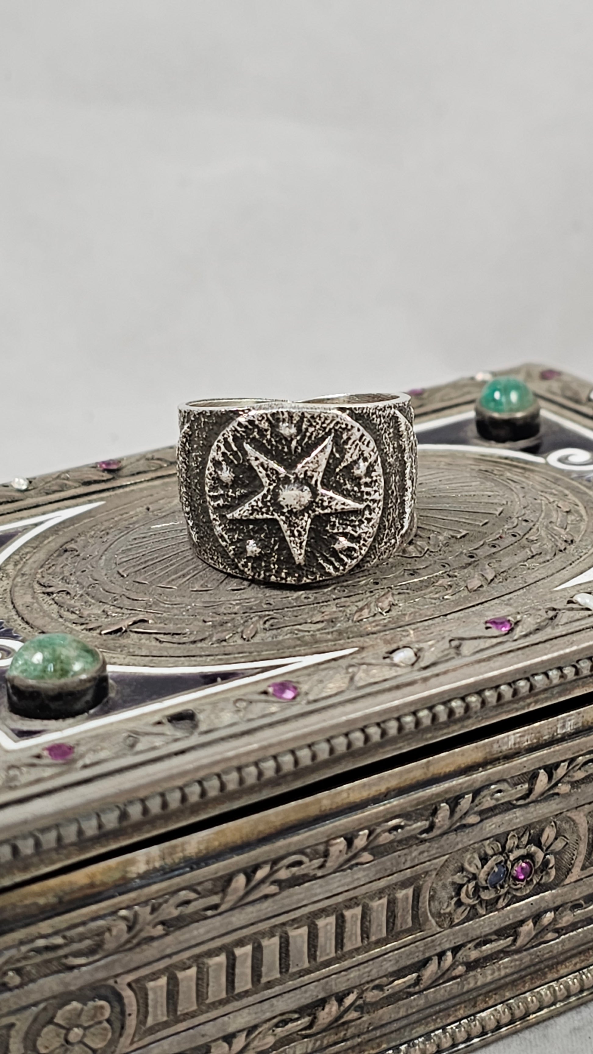 Sterling tufa cast star ring by Anthony Bowman, 3/4" wide size 11-1/2