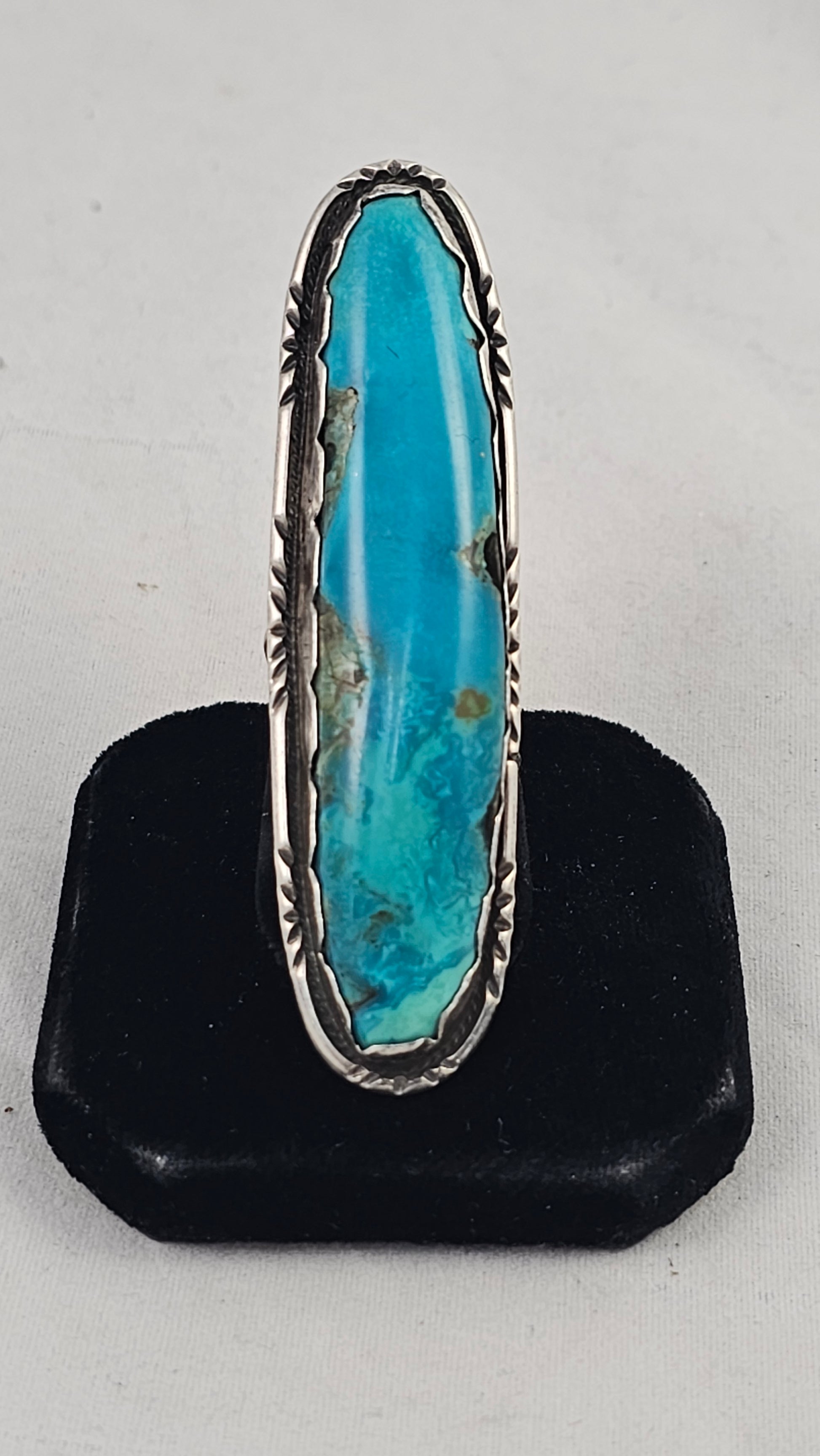 Vintage turquoise and sterling statement ring 2-3/8 × 1" wide, size 6-3/4 signed MT 76