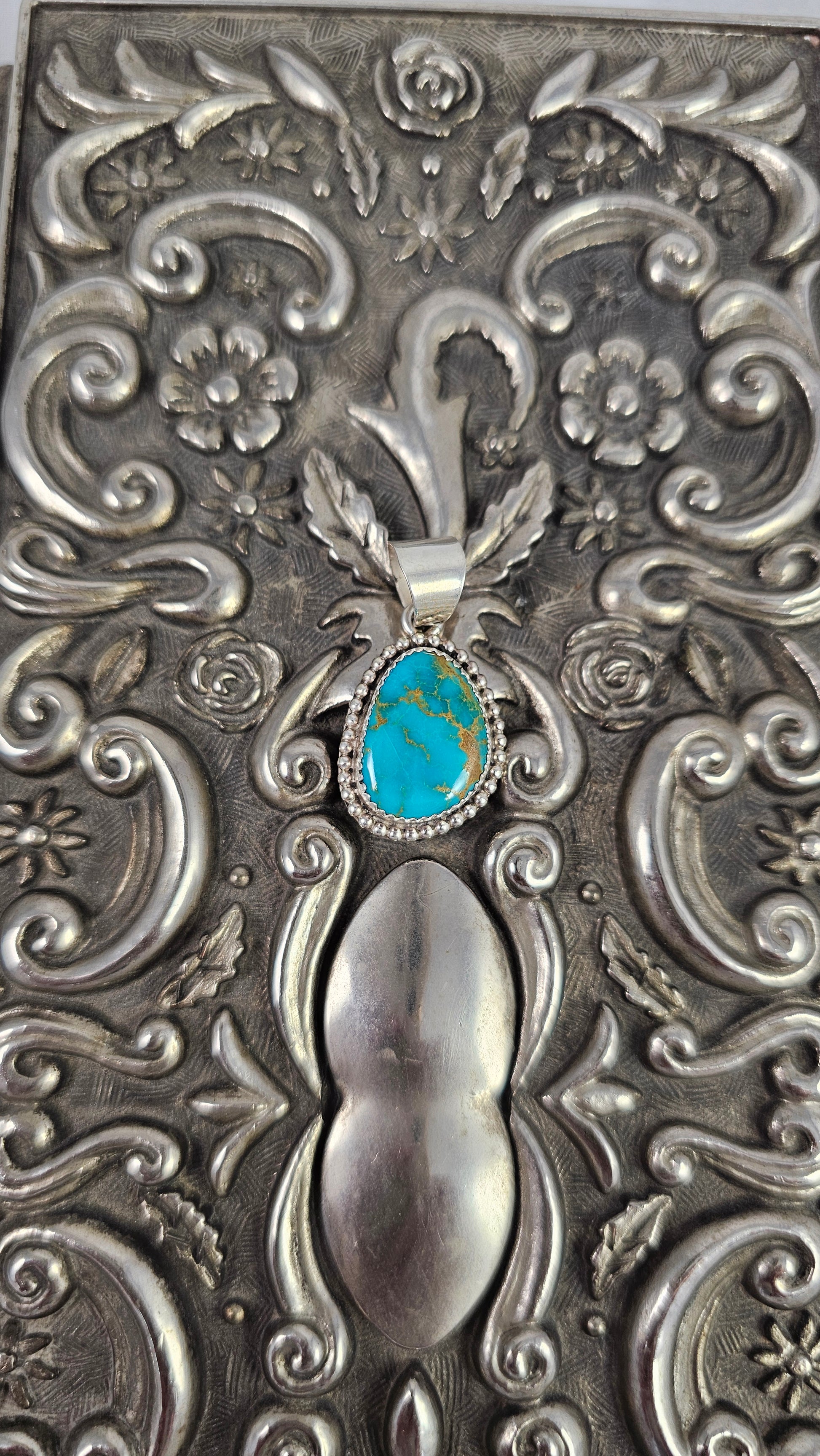 Turquoise and sterling pendants. Signed and stamped. 3/4 × 1/2" wide plus 7mm bail