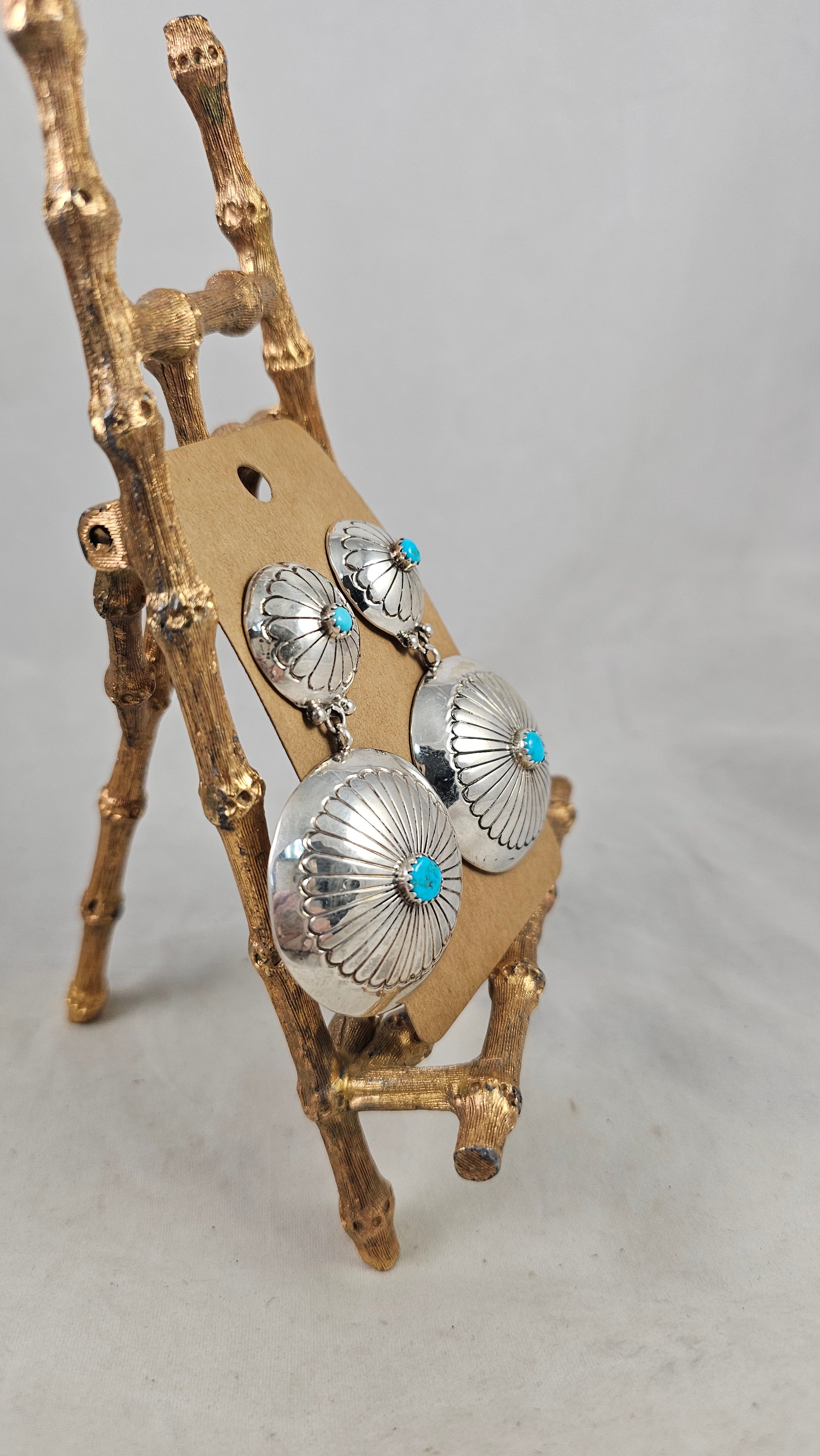 Concho earrings turquoise and sterling silver. 2-1/2 × 1-1/2" wide. Lightweight, 25 grams