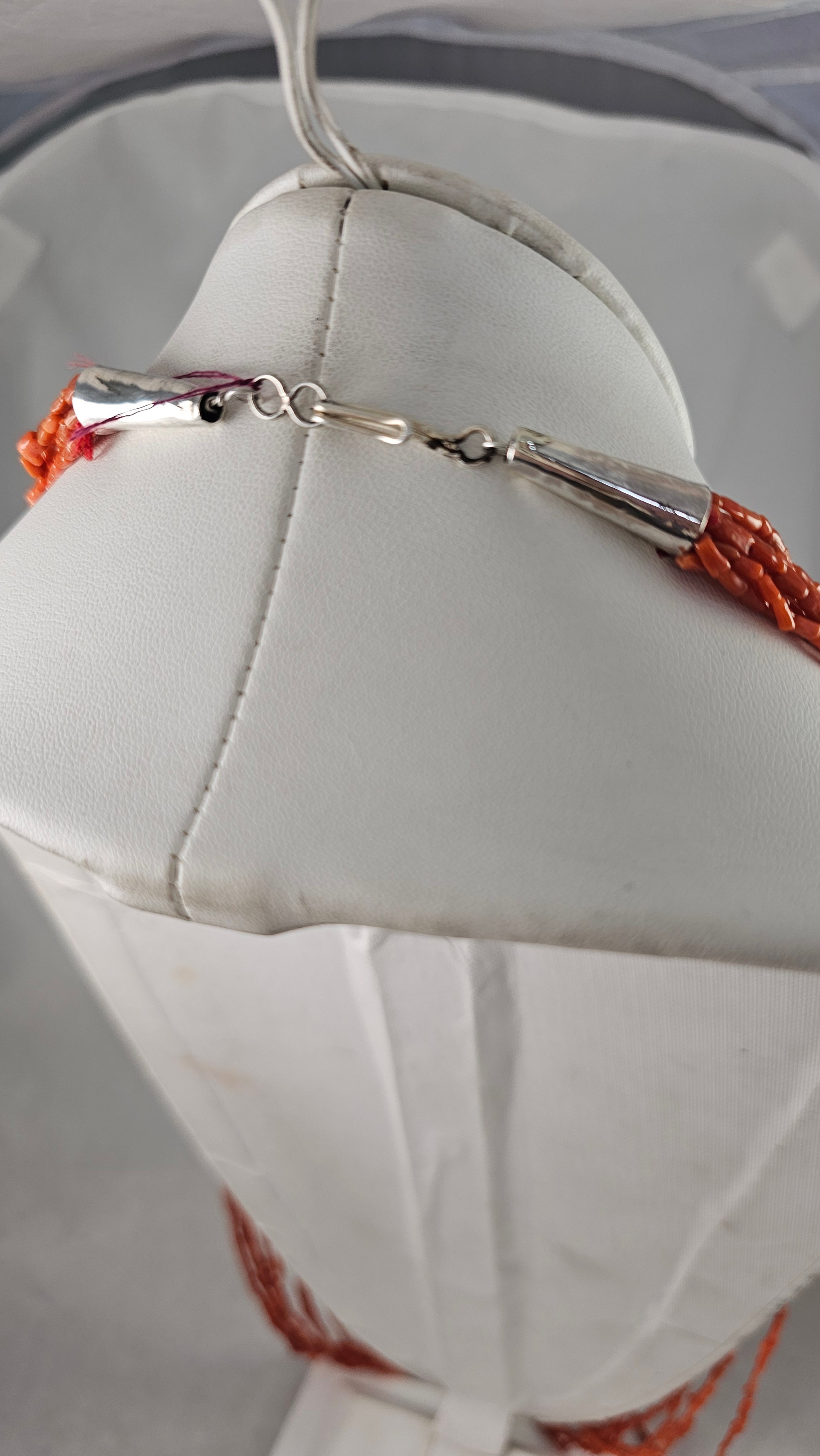 Coral necklace 9 strand, 36" long waterfall with sterling clasp.